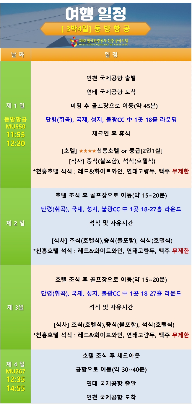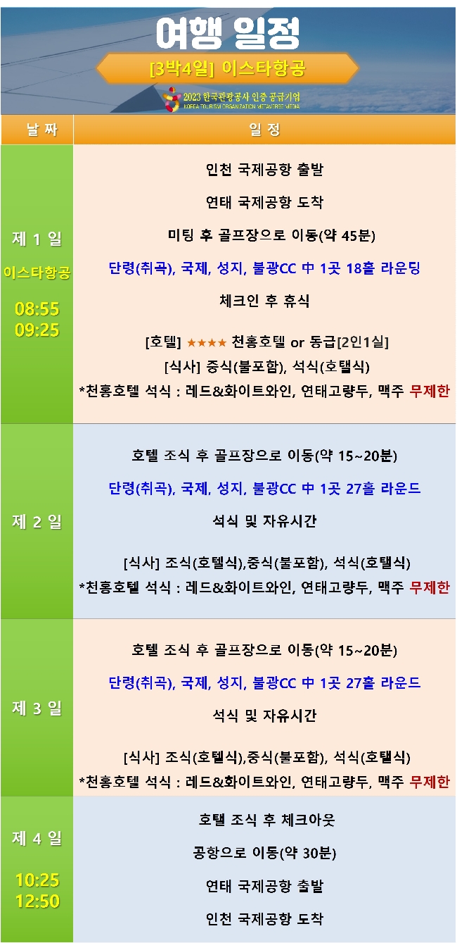 | 여행기간 | 2026년 04월 24일 (금) ~ 2026년 04월 27일 (월) 3박 4일 |