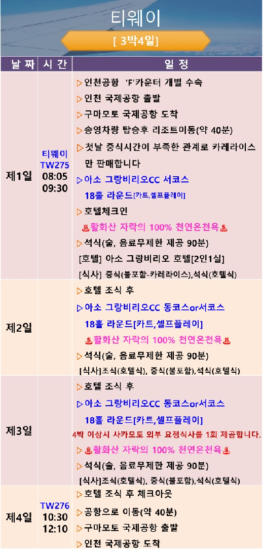 TW276총 1시간 40분 소요직항 |