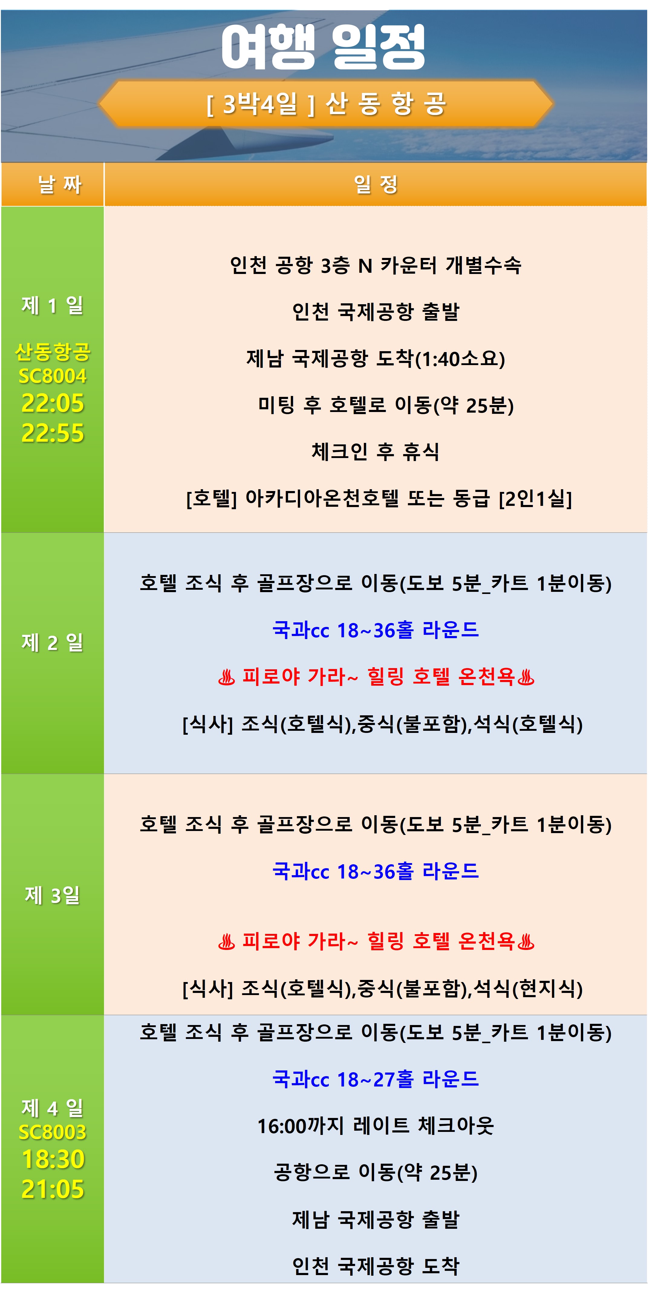 SC8004총 1시간 45분 소요직항 |
