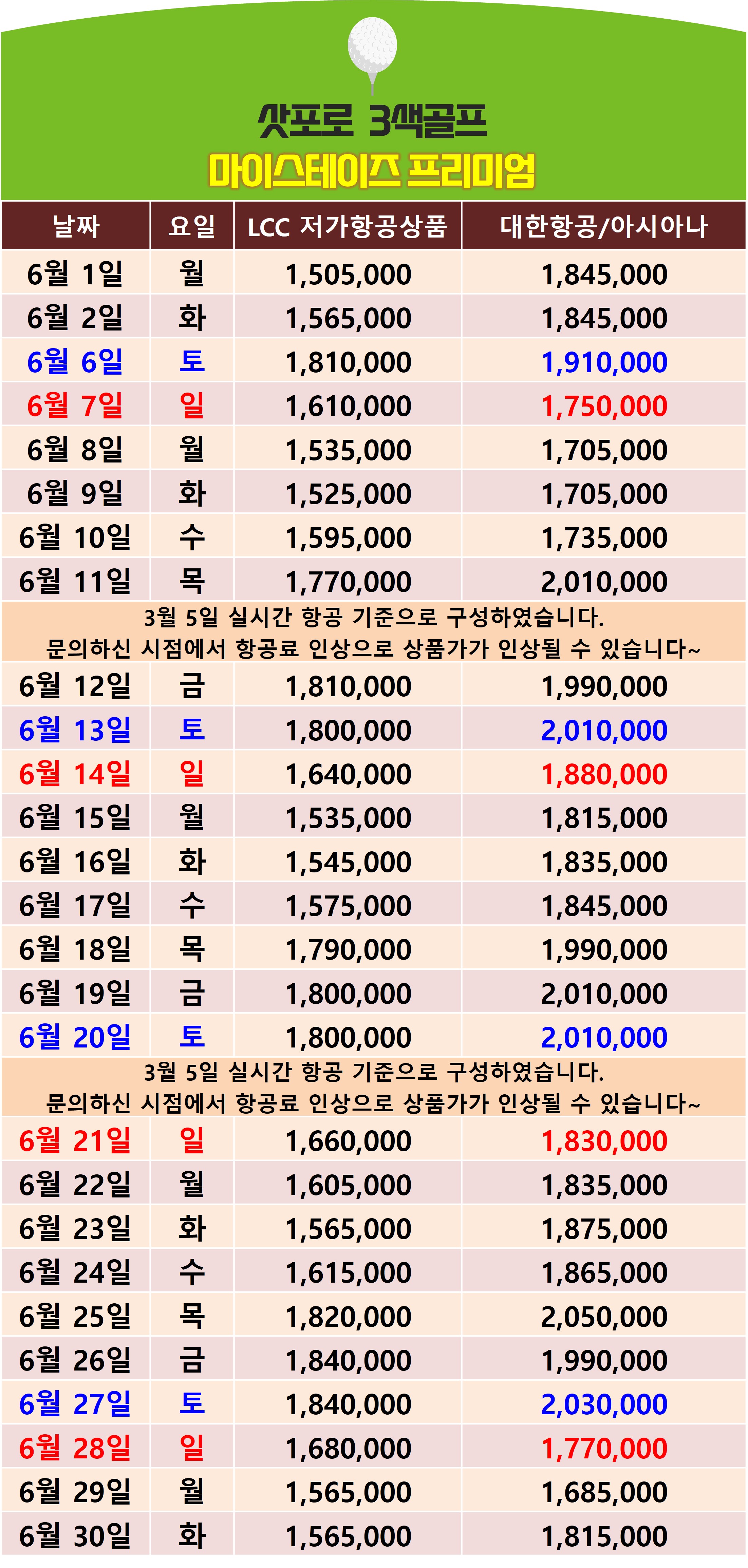 (삿포로/치토세) 2026년 06월 01일 (월)