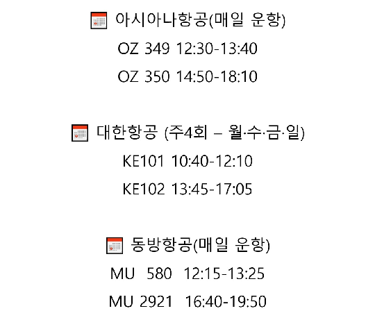 OZ349총 2시간 10분 소요직항 |