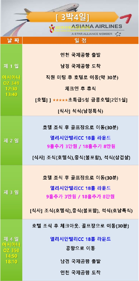 OZ350총 2시간 20분 소요직항 |