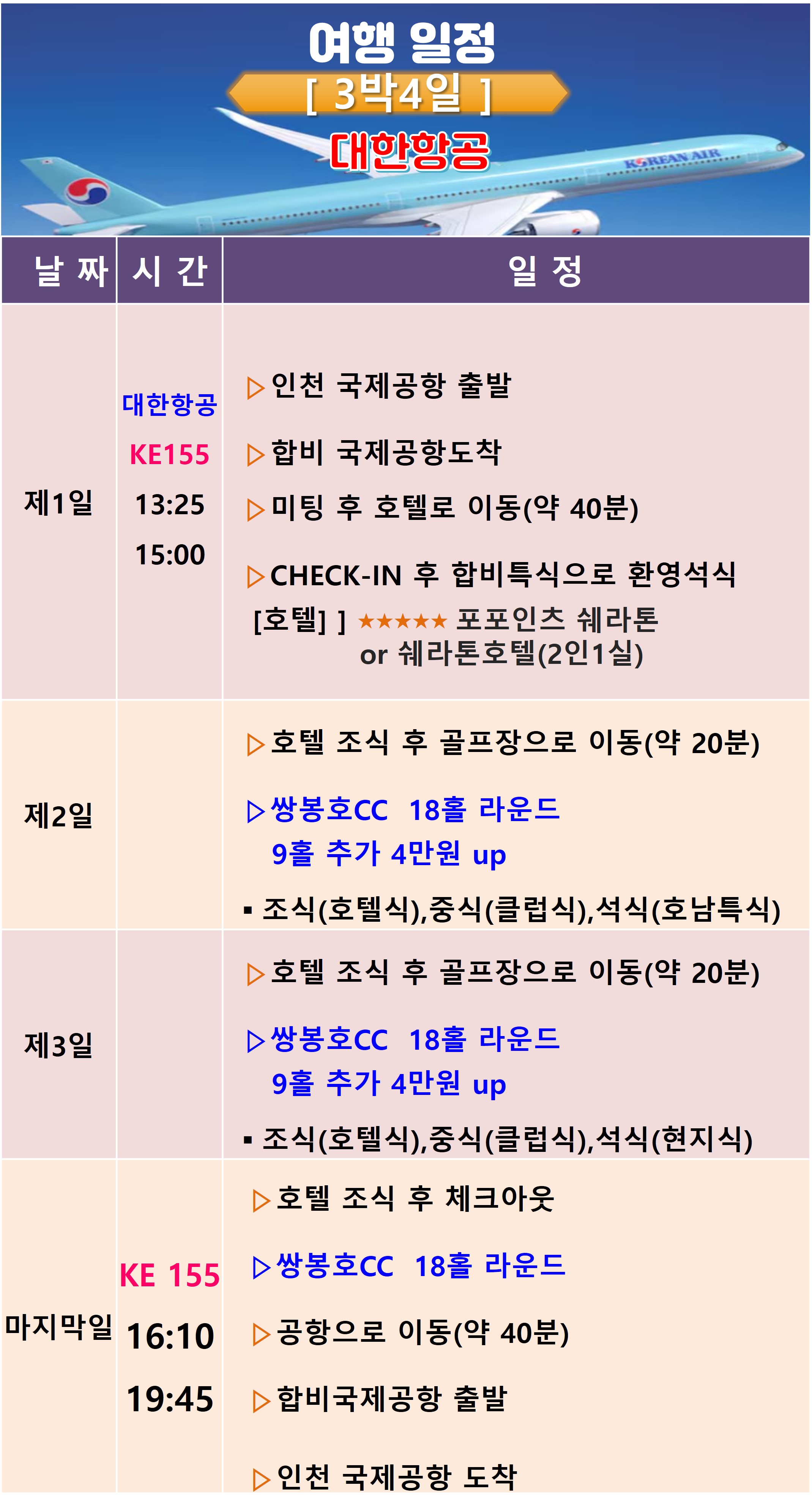 KE155총 3시간 0분 소요직항 |