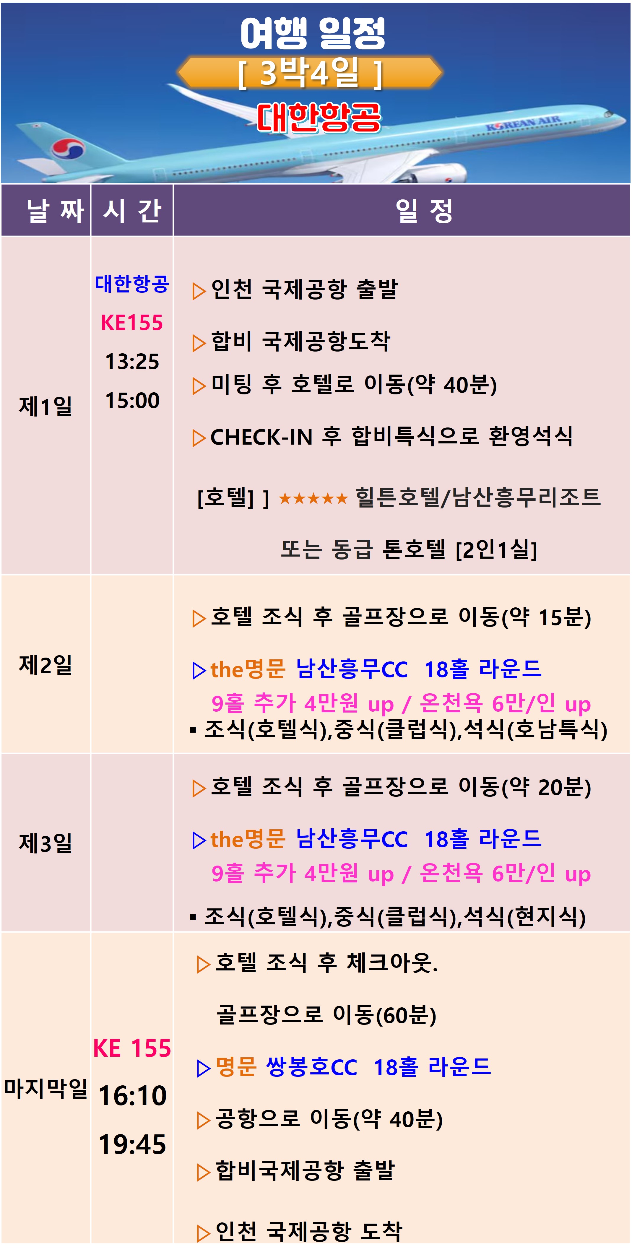 | 여행기간 | 2026년 04월 26일 (일) ~ 2026년 04월 29일 (수) 3박 4일 |
